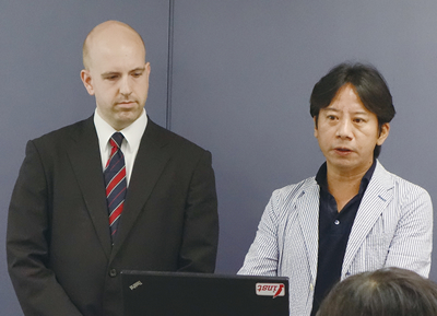 カリキュラムを提供するビットバンクの廣末紀之CEO(右)と、