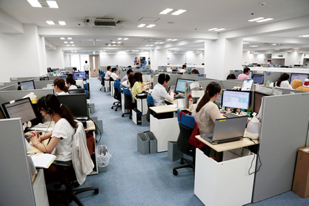 同センターは、2005年11月に川崎市に次ぐ第二の拠点として開設した。今年11月で丸11年が経つ。場所は、JR宮崎駅から徒歩10分程度の市中心街に位置する。24時間365日のサポートを交代制で対応する社員が通いやすい立地だ。デパート(宮崎寿屋百貨店)だったビルの4階から7階のフロアーを改装。当初100人規模だった従業員数は、現在約500人が勤務するまでに拡大した。ほぼすべてが正社員(エンジニア)で占められ、競合他社に追随を許さない体制が敷かれている。