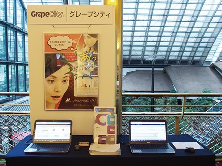 グレープシティは、基本的な集計・分析機能に絞って、使いやすくシンプルなBIツール「DragonFly BI(ドラゴンフライ ビーアイ)」を展示。DragonFly BIによって、企業内のあらゆるデータのビジュアル化が簡単に実現することをアピールした。