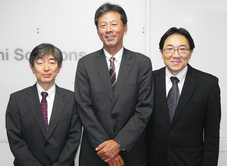 (左から)三宅立記部長、三原丈英本部長、柴田雅寿技師。グローバルで組織横断型の開発タスクチームを率いて、ビジネスコラボレーションを推進する