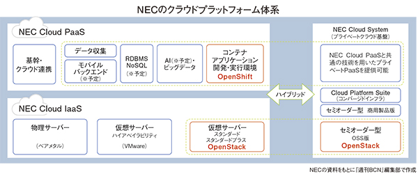 クラウド事業ではSaaS、IaaSに注力していたNECが、11月よりPaaSにも本格進出した。基盤技術としては米レッドハットの「OpenShift」を採用。OpenShiftをベースとしたPaaSは、レッドハット自らが手がけるサービスを除くと国内では類をみない。PaaSベンダーとしては後発のNECだが、コンテナ型の開発・運用に最適な環境を提供することで、これからビジネスのデジタル化に着手する企業の需要を取り込もうとしている。(日高 彰)