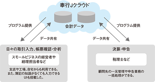 ただし、有望市場に本格参入するとしても、単なるフォロワーでは競争力を発揮できない。和田社長は、先行するベンダーをよく研究し、奉行Jクラウドには多くの差異化ポイントを盛り込んだと強調。次のように説明する。「先行するクラウド会計は、ウェブアプリケーションとして提供されていて、操作性、パフォーマンス、機能などに限界があった。SaaSであっても、ここに妥協しては顧客基盤が広がらないと考えた。奉行Jクラウドは、WPF(Windows Presentation Foundation)でつくったWindowsのネイティブアプリであり、従来の奉行シリーズと遜色ない使い勝手を実現した。従来の奉行Jシリーズの延長ではなく、3~4年の時間とかなりのコストをかけ、まったく新しいアーキテクチャ、最新の技術でつくりなおした次世代製品だ。また、クラウドのインフラとしてはMicrosoft Azureを採用した。データはマイクロソフトの複数の国内DCに置き、バックアップも万全にしているほか、SQL Databaseも使い、高いパフォーマンスとセキュリティを両立している。このあたりのコストのかけ方は、他のベンダーとはレベルが違うと自負している」。奉行Jクラウドの価格は4980円/月と、小規模法人向けクラウド会計の競合に比べて割高だが、サービス内容を踏まえた評価であれば勝負できるということのようだ。