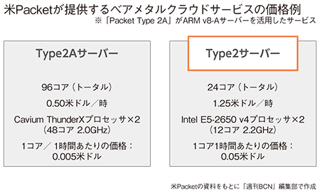今回、日本で提供を開始したベアメタルクラウドサービス「Type2Aサーバー」の提供を北米で16年11月に開始したところ、わずか2週間で400ユーザーを獲得したという。「高性能のサーバーを低価格で使いたいという開発者が利用している」とのことだ。これまで米Packetが提供していたインテル搭載サーバーと比べて10分の1程度で使えるという料金体系も魅力の一つになっている。