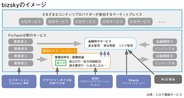 bizskyの独自コンテンツとしては、MJSの既存資産をそのまま転用するかたちでクラウド財務会計システムから提供し始めるという選択肢もありそうなものだが、将来的にFinTechサービスを大きく成長させるために必要なピースとして、ユーザーの入出金情報を抑えるサービスに着目したということのようだ。また、MJSにとっては、新しい領域の商材を出すことで単純に新規顧客を獲得しやすくなるわけで、bizsky全体の顧客基盤拡大を後押しする効果も期待できるといえよう。