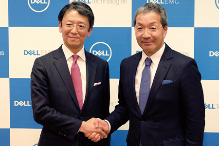 デルの平手智行社長(右)とEMCジャパンの大塚俊彦社長