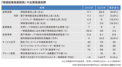 今後も中国IT市場は全体的には高成長を維持する見込みだ。工信部が国家発展和改革委員会(発改委)と共同で発表した「信息産業発展指南」によると、20年の中国情報産業売上高の目標値は、26兆2000億元。15~20年の年平均成長率(CAGR)は8.9%となる。このうち、ハードウェアなどの電子情報製造業が14兆7000億元(CAGR:5.8%)、ソフトウェア・情報技術サービス業が8兆元(CAGR:13.2%)、通信サービスなどの情報通信業が3兆5000億元(CAGR:15.5%)を発展指標とした。