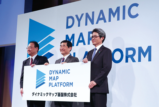 ダイナミックマップ基盤の発足式典での中島 務社長(写真中央)
