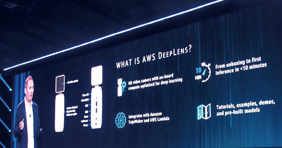 今回のre:Inventでは、AWSが初めてハードウェアの販売を手がけると発表した。ディープラーニングに対応したビデオカメラ「AWS DeepLens」である。AWS Lambdaでプログラミング可能で、例えばカメラが犬を捉えたらプログラムを実行するといったことに活用できる。また、IoTデバイス向けOS「Amazon FreeRTOS」を発表。これもクラウドサービスではなく、IoTデバイスというエッジ側向けである。IoTデバイスとクラウドサービスとの親和性を高めるのが狙いだ。こうした流れから、仮想デスクトップ環境(VDI)に最適なノートPC型デバイスが登場するなど、さまざまなデバイスが登場することも考えられる。