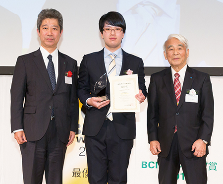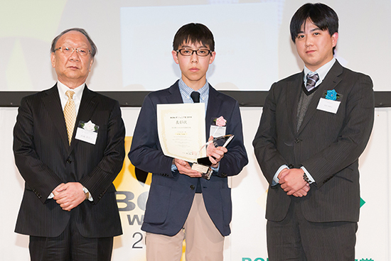 (中央)井上晶さん(伊予市立港南中学校)U-15 プログラミングコンテスト