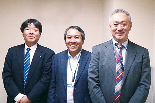 (左から)サニー技研の中村俊夫副社長、APTJの高田広章会長、菱電商事の松村保明部長