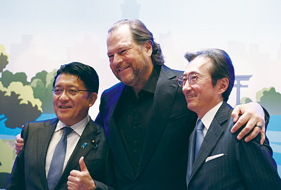 米セールスフォース・ドットコムのマーク・ベニオフ会長を中央に、