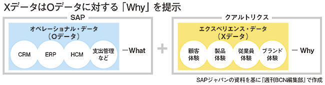 クアルトリクスは自らの製品をエクスペリエンス・マネジメント(体験管理)製品と定義し、顧客体験の向上、従業員体験の向上、製品体験の向上、ブランド体験の向上という四つの用途向けに、同社が蓄積してきた知見をパッケージ化して提供している。そして、これによって収集・活用できる顧客満足度や従業員満足度などのデータを「Xデータ(エクスペリエンス・データ)」と呼んでいる。一方で、既存の業務アプリケーションが保持するデータを「Oデータ(オペレーショナル・データ)」と呼び、XデータとOデータを連携させて分析・活用することで業務改善のためのアクションを大きく加速させることができるというメッセージを市場に訴求してきた。そのため、有力なERP、CRMベンダーなど“Oデータ界”のトッププレイヤーとは広くAPI連携できる環境も整えてきた。
