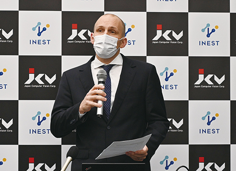 同日の記者発表会でJCVのアンドリュー・シュワベッカー社長は、今年4月に正式に販売を開始したSenseThunderの導入状況について「ショッピングモールや病院、スタジアムなど、日本全国の数千カ所で導入されている」と紹介し、「ニューノーマル(新常態)を考えると、職場の安全を確保する製品には強い需要があり、多くの中小企業からSenseThunderに興味を示す問い合わせが寄せられている」と述べた。