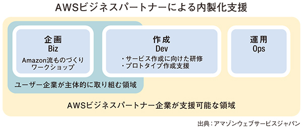 アマゾンウェブサービスジャパン(AWSジャパン)は、ビジネスパートナーと連携してユーザー企業のIT人材の育成に取り組む。ユーザー企業にAmazon Web Services(AWS)を活用した「クラウドネイティブなAmazon流のものづくり」(渡邉宗行・執行役員パートナーアライアンス統括本部統括本部長)を習得してもらうことで内製化を支援。AWSジャパンがユーザー企業に対して直接的な技術支援を行うことはこれまでもあったが、SIerを中心としたビジネスパートナーと一体となってユーザー企業の内製化を支援するのは今回が初めて。ユーザー企業が主体となって先進的なITを駆使した新規ビジネスを迅速に立ち上げてもらうことで「攻めのIT」の投資拡大を狙う。(安藤章司)