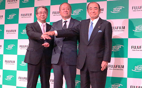 右から富士フイルムHDの古森重隆・代表取締役会長CEO、