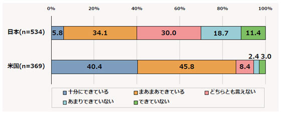 情報処理推進機構(IPA)によれば、米国では各部門の協調が8割程度できているのに対し、日本では4割ほどといった状況となっている。