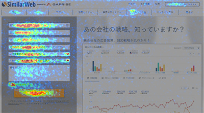 当社の場合、BtoBサービスのWebサイトでは左サイドの無料版登録を目的としていた。サイトをヒートマップで見たところ、無料版の登録フォームにユーザーが集まっていた。