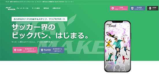 「サッカーに関わるすべての人に+1の選択肢を。」というコンセプトを掲げた「PLAYMAKER」というサービスをご存じだろうか。PLAYMAKERは、サッカー業界の課題を解決するために生み出されたサービスで、選手とクラブチームのコミュニケーション支援を行う、インターネット上のバーチャル代理人のイメージである。そのほかにもクラブチームからの情報発信やレンタル移籍支援など、サービスを拡充しており、サッカー業界では注目されている。