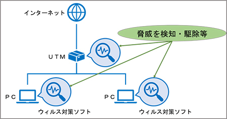一般的に、ウイルス対策やUTMといったIT製品の導入は、基本的な情報セキュリティ対策として必要なものであるが、サイバー犯罪の被害を防ぐには十分とはいえない。理由は、ランサムウェアや標的型攻撃が最終目的である金銭や情報の盗取を果たすために初期侵入の段階で気付かれることがないよう、ウイルス対策ソフトなどで検知されにくいように作り込まれているからである。