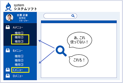 また、既存の契約している有償ソフトは100%使いこなしているのか、と疑問を持ってもいいかもしれない。例えば、市販のパッケージソフトについて、実際は全体機能の半分も使われていないというケースがある。
