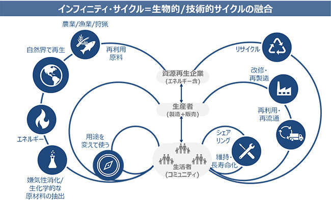 同業者と横並びの同質的な環境対応を続けると、資源や埋立場所の枯渇など限界が訪れる。そのため、コミュニティ単位で一枚岩となり、デジタルを活用した「インフィニティ・サイクル」を構築し、コミュニティ同士が相互補完することでサステナブル社会に羽ばたけるのではないだろうか。