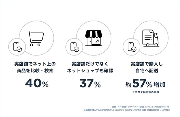 消費者の購買行動や買い物の手段の多様化は以前から見られていたものの、コロナ禍で一気に加速した。2020年の緊急事態宣言をきっかけに、巣ごもり需要で消費者によるネットショップの活用が増えたという分かりやすい動向に加えて、動画投稿サイトや写真共有サイト、SNSを利用した集客策で刺激を受け、ネットショップで購入するという消費者も増加している。