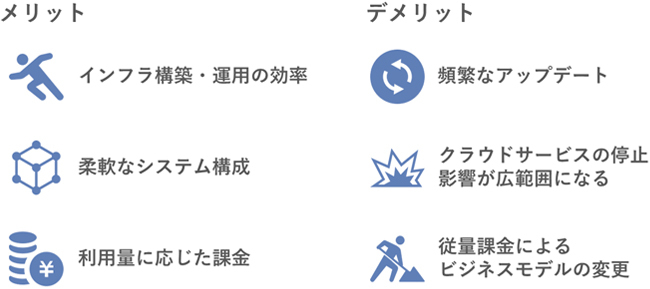 あらためてクラウドのメリットとデメリットを整理する。まず、メリットは大きく三つある。