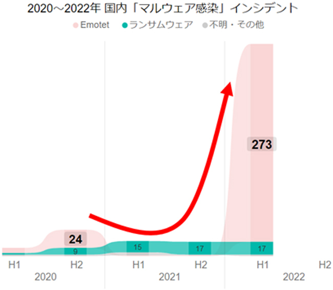2020~2022年 国内セキュリティインシデントの上半期比較