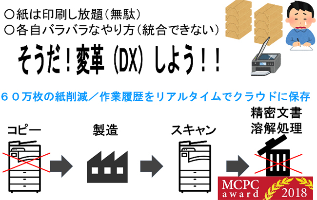 タブレット端末を導入する前は、この作業は全て紙で行われており、年間60万枚ものコピー用紙が消費されていた。デジタル化でコピー代やファイル代、事務作業が大きく削減できた。