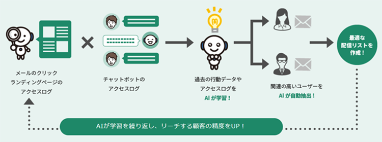 このシステムは、搭載されたロボット(AI)によって、高度な専門知識がなくともマーケティング業務ができ、顧客データ分析に基づくレコメンド設計が自動化されるという特徴がある。専門知識を駆使してマーケティングを行う担当者が必ずしも必要ないということだ。また、導入コスト、運用コストが極めて低く、その使い勝手の良さも相まって、中小企業への導入が進んでいる。