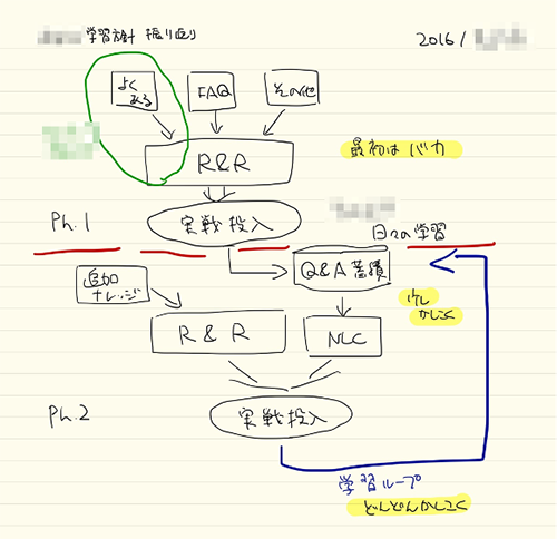 NLCにせよ、R&Rにせよ、機械学習を用いる場合は訓練データが必要だ。ある質問文があったときに、そのナレッジを使えば良いのかが導き出せれば良いのだから、質問文のバリエーションが特徴量、使用するナレッジのIDが教師データということになる。あらかじめ存在しているのはナレッジの方だから、ナレッジごとに、それを回答として用いるような質問文のバリエーションを作れば良い。