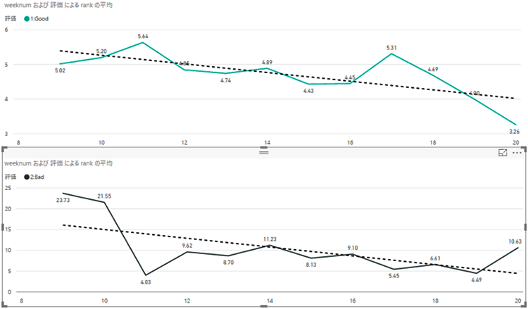 精度のモニタリングも必要だ。せっかくAIを使っているのだから、使えば使うほど賢くなるシステムにしたい。このシステムでは、検索結果として表示されたナレッジごとに役立ったか役立たなかったかの評価をしてもらっていたので、役立ったナレッジの表示順位がより上位に、役立たなかったナレッジの表示順位がより下位になれば、精度が向上しているということになる。そこで、BIツールを使ってデータの収集と可視化を行い、毎週報告するようにしていた。