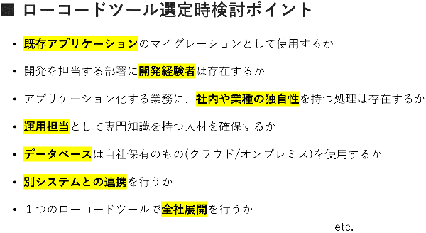 次に、ローコード開発を始める上でまず初めに検討・決定すべき事項について解説する。