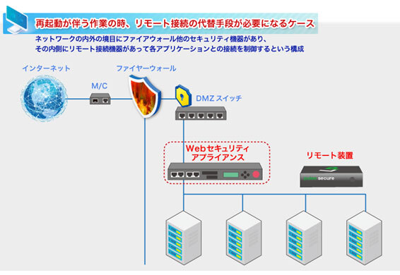 このケースでは、ファイアウォールは別のベンダーが担当し、セキュリティ機器は当社の担当でした。セキュリティ機器に関しては、セキュリティパッチを充てた後、再起動が必要で、その際にユーザーのアクションが求められることが分かっていました。