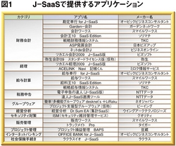 今後も続々追加予定 では、経産省はどのように準備を進めてきたのか。経産省でJ-SaaSプロジェクトを主導しているのは、同省の商務情報政策局情報処理振興課で、全体を管理する幹事会社として民間企業である新社会システム総合研究所を選び、同社に全体のコーディネートとプロジェクト管理、実際の諸業務を任せた。IT基盤の開発・運用は富士通に一任。最大のポイントであるアプリケーションは今春開始時点で18社、26種類を用意した(図1参照)。アプリの種類は今後も拡充する予定で、26種類は第一弾。今夏には新たに7社のアプリを増やす計画だ。その後も「順次拡充する」(安田篤・経産省情報情報政策局課長補佐)。ISVは、経産省から移植費用の支給を受けてJ-SaaSに自社製ソフトを移植しサービス化する。利用料金は各ISVが独自に設定するが、月額3000~1万5000円になる見込みだ。