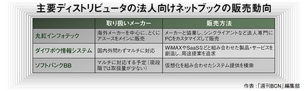 法人向けのネットブック販売に力を入れる台湾PCメーカーは、日本国内でも通信事業者のイー・モバイルやソフトバンクモバイルなどと連携を強めることで拡販に弾みをつける戦略を推進するものとみられる。