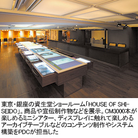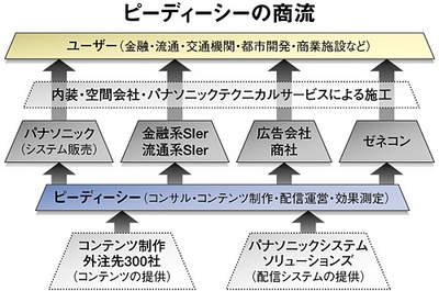 コンテンツ制作を重視して提供 パナソニックの社内ベンチャー、ピーディーシー(菅原淳之社長)は、パナソニック製プラズマ・液晶テレビディスプレイと合わせ、コンサルティング、システム設計・施工、コンテンツ制作、パナソニックシステムソリューションズが開発した配信システム「NMStage」の運用・保守管理、そして効果測定までをワンストップサポートしている。「『広告メディア』としてはまだ未成熟。施設案内、インフォメーション、販促など、何の目的で導入するかを第一に考え、設置場所などを吟味する必要がある」と菅原社長はみている。