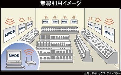 無線で最大32台、有線で最大1024台のディスプレイに配信できる独自のマルチキャスト技術を採用したネットワーク機器「MVDS」と、ユーザーの既存資産のディスプレイをネットワーク化して、最大6画面の拡張ディスプレイに異なった画面を表示できる「NetDA-1」という二つの機器で、交通・流通・医療などの分野で拡販を狙う。