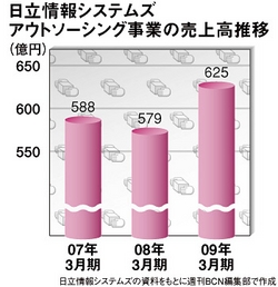 これにより運用の標準化によるコスト削減ができ、また将来的に両者のクラウド/SaaSの連携による規模のメリットも見込める。同じく業界に先駆けてクラウドビジネス参入を表明した大手SIerの日立情報システムズは、全国に十数か所のデータセンター(DC)を展開。従来はDCごとに運用管理を行っていたが、これをソフト技術によって仮想的に統合した。主要DCの統合的な運用を推進したことで2009年3月期までの3年間累計でDCにかかるコストをおよそ30億円の削減に成功。同時に売り上げも伸ばして収益力を高めた。