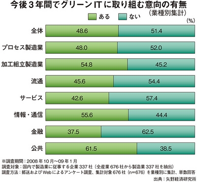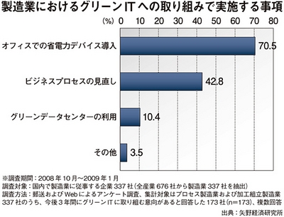 一方、環境対策の取り組みでは、企業などがIT機器を利用し、生産や物流などの業務効率を向上。CO2などの削減に貢献することをいう。