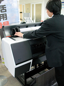 国内大判プリンタのシェアトップを走るセイコーエプソンは、主力機「MAXART」シリーズを改良。大判販促物の内製化をこれまで以上に行いやすくし、「ブランドオーナー」と呼ぶ全国に店舗を置く小売店やGMS(大規模小売店)へ販促を開始した。対する日本ヒューレット・パッカード(日本HP)も、「高い生産性」を売りにした大判プリンタの普及機「HP Designjet L25500」シリーズを2010年3月上旬から順次発売する。