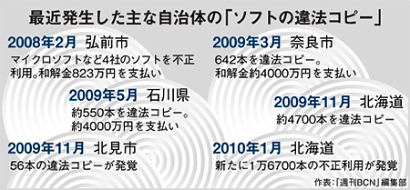 しかしながら、こうした業界団体の取り組みが進むなかで、現実は逆行している。「SAM」の取り組みどころか、国内ではソフトの不正利用(違法コピー)が蔓延。とくに最近では、自治体での違法コピー事件が明るみに出て、多額の和解金をソフトメーカーに支払うケースが増加し、社会問題にまで発展している。