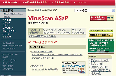 マカフィーがもつサービスで、中小企業の人気を集めているのが、2001年から販売している「McAfee VirusScan ASaP(現・McAfee Total Protection Service)」だ。