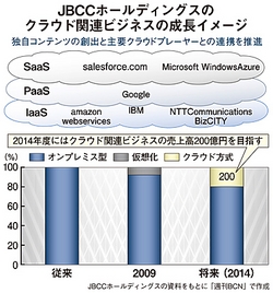 JBCCホールディングスは、2014年にはSI事業の約2割をクラウド関連が占めると予測。SalesforceやGoogle、Amazon、Azure(マイクロソフト)などパブリック系のクラウドベンダーとの連携を視野に入れる。日立製作所も、自社グループでSIによって構築するプライベートクラウドと、他社ベンダーなどが提供するパブリッククラウドとの融合によって、クラウドらしいオープンなシステム構築の方向性を示す。日立ソフトはこの6月、中国で地場ITベンダーと連携したSalesforceの販売を発表しており、サービスメニューの拡充を急ピッチで進めている。