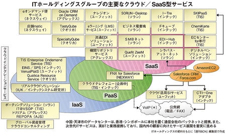 受託ソフト開発やハード販売の伸び悩みとは対照的に、クラウド/SaaS型サービスの拡大は急ピッチで進む見込みだ。有力SIerは、こうした市場のニーズを敏感に感じ取り、クラウド/SaaS型サービスのハード的基盤であるデータセンター(DC)設備に積極的に投資。グループの総力を上げてミドルウェアやアプリケーションの開発に力を入れている。