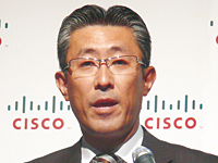 | シスコシステムズの平井康文社長は、事業戦略発表会で「タンバーグの買収にともなう統合が無事に完了した」と胸をなでおろす |