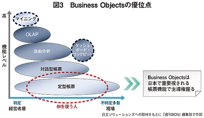 当時は百貨店などの小売業や金融機関、通信事業者など、一部の企業が先進的な取り組みとして、トライアル的に導入しているケースが多かった。従来、BIは部門ごとに閉じて導入して特定の人が使うツールだったが、「経営戦略の見える化」という言葉が広がり、基幹系システムとも連携するようになり、全社員が利用する「情報統合基盤」として構築されるようになってきた。また、BIも進化し、これまでデータサマリー程度しか表示できなかったが、明細データを表示して、分析することができるようになっている。最近では大量データの高速処理を実現するオラクルの「Exadata(エクサデータ)」、IBMが買収した「Netezza(ネティーザ)」など、DWHのためのマシンも登場している。一方で、比較的安価な国産BI製品が登場して以降は、中堅規模企業にもすそ野が広がっている。