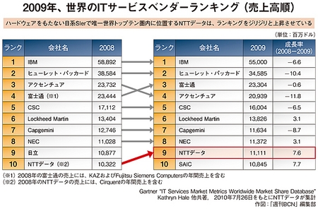 世界のITベンダーは、大規模な再編を繰り返しながらトップ集団を形成している。NTTデータが日本のSIerとして唯一、世界のトップ10に入る。日本の情報サービス産業を真の意味で発展させるには、世界で活躍するSIerをさらに多く輩出することが欠かせない。