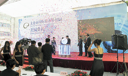 約10万m2の敷地面積をもつ国際アウトソーシングパークとDCの開所式には、太倉市の王剣鋒副市長を含め、市の関係者が多く集まり、懇親会の場でSWLグループのキーパーソンと交流した。アチーボがDCの建設地として太倉市を選んだのは、土地価格が安いことや上海市街に近いという地理的条件だけでなく、太倉市が外資系企業の活動を積極的に支援していることが重要なファクターだった。アチーボはこれから、市による補助金制度を活用し、所得税の免除や新卒社員のトレーニング費用をカバーするなどの特典を用意して、テナント企業を募集していく。