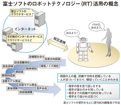 携帯やテレビ、洗濯機──。これまで、だんまりを決め込んできた電子機器が、人の話を聞き、自らも話し、表情豊かにコミュニケーションする。そんな夢のような話を実現するのがRTで、その中核となるのが組み込みソフトだ。新しい動作や認識パターンは、ネット上で共有され、ユーザー自身がダウンロードして拡張していく。このサービスモデルそのものを富士ソフトが支援していくことで、組み込みソフトビジネスを拡大させる。